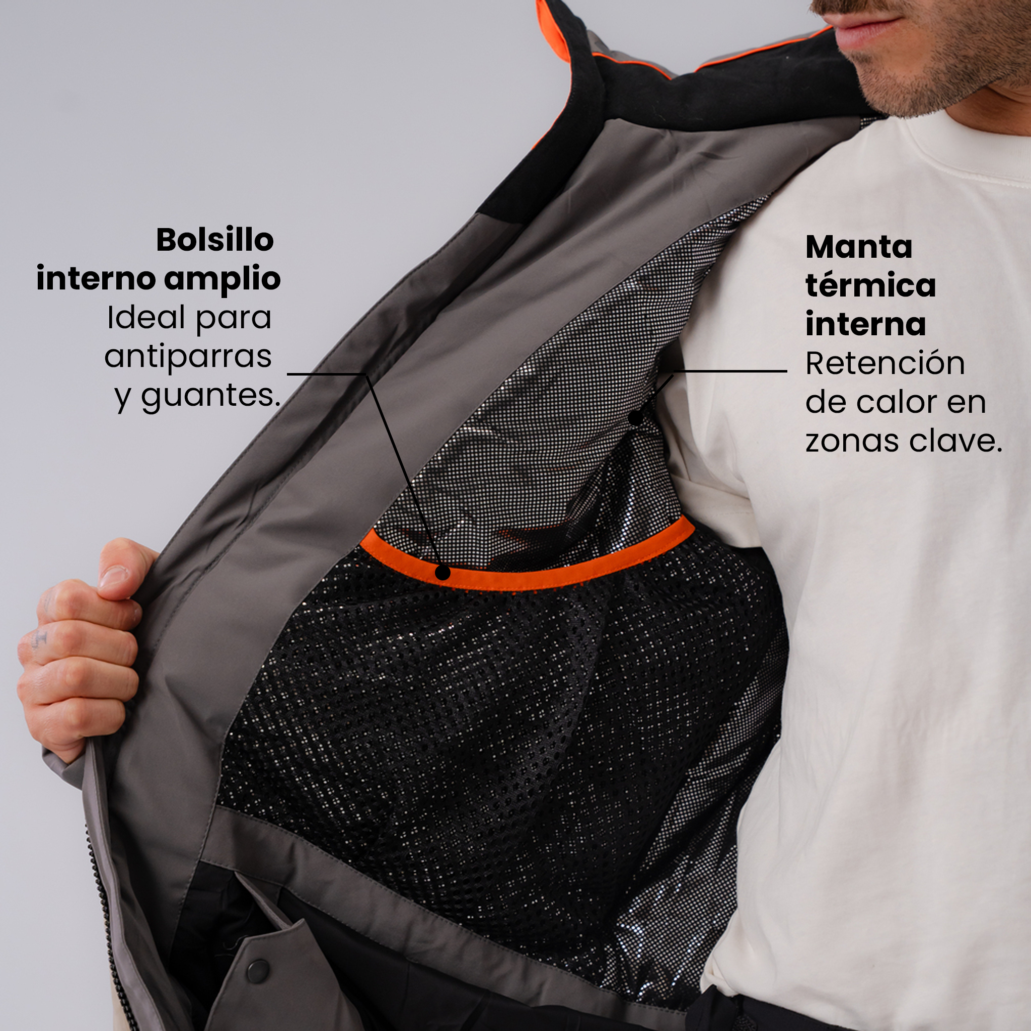 Su construcción térmica conserva el calor corporal sin sumar peso innecesario, manteniendo confort y libertad de movimiento.