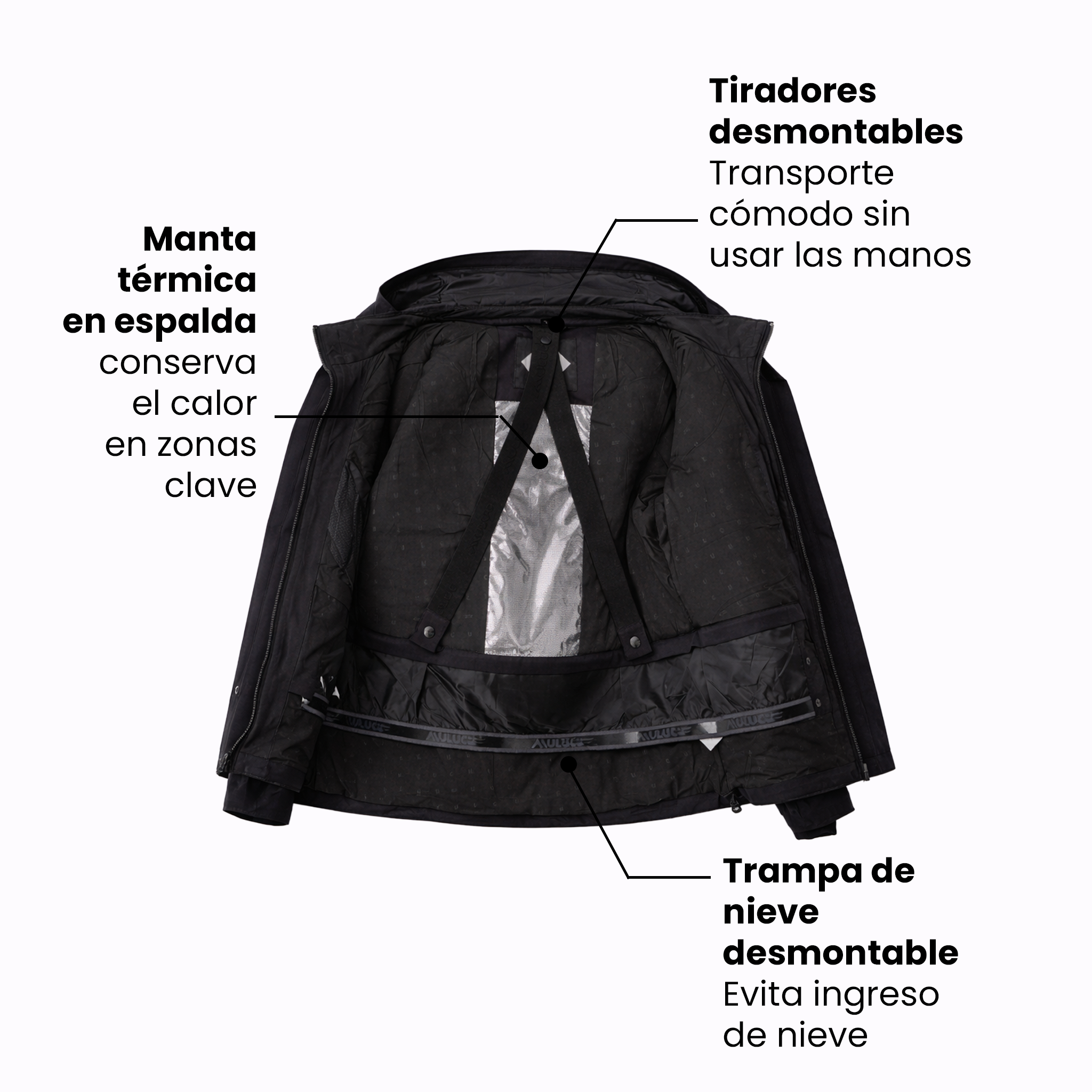 Cada detalle está pensado para mejorar la experiencia de uso, aportando ajuste, protección y practicidad durante la actividad.