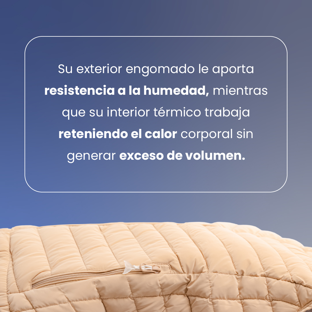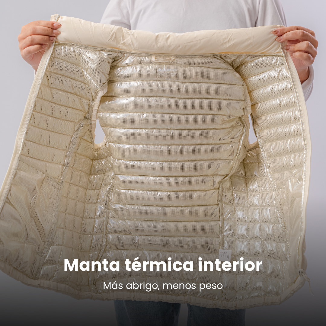 La manta térmica refuerza la eficiencia del relleno y mejora el rendimiento general de la prenda.