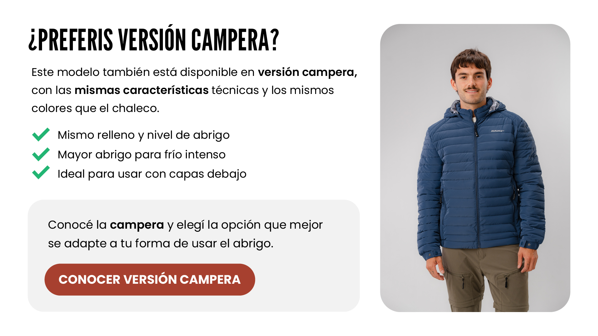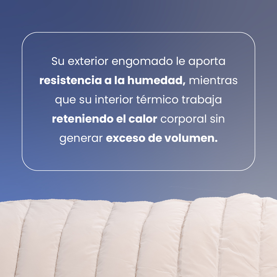Material térmico desarrollado para ofrecer un excelente equilibrio entre abrigo, confort y durabilidad.