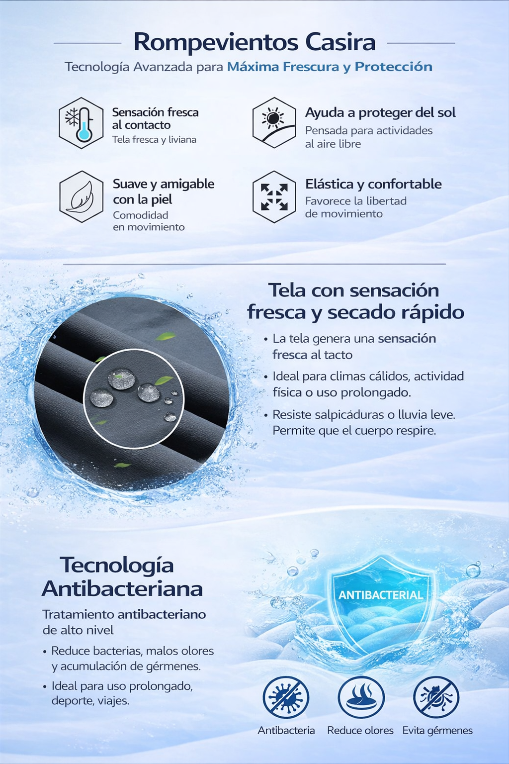 El Rompevientos Casira fue diseñado para quienes se mueven, entrenan, viajan o simplemente buscan una prenda cómoda y funcional para el día a día. Liviano, versátil y canchero, es perfecto para usar solo o como capa exterior sobre prendas livianas, acompañándote sin sumar peso ni rigidez.